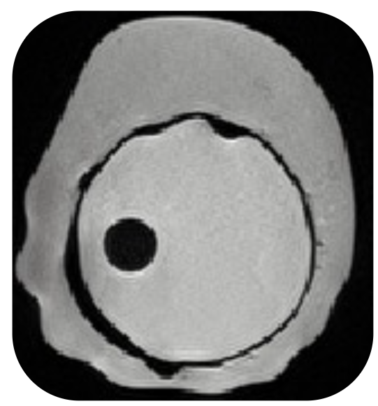 Here, we visualize one of our MRI scans, where we run through the slices at different z values. As can be seen, we scanned 6 inserts at a time to save time and resources.